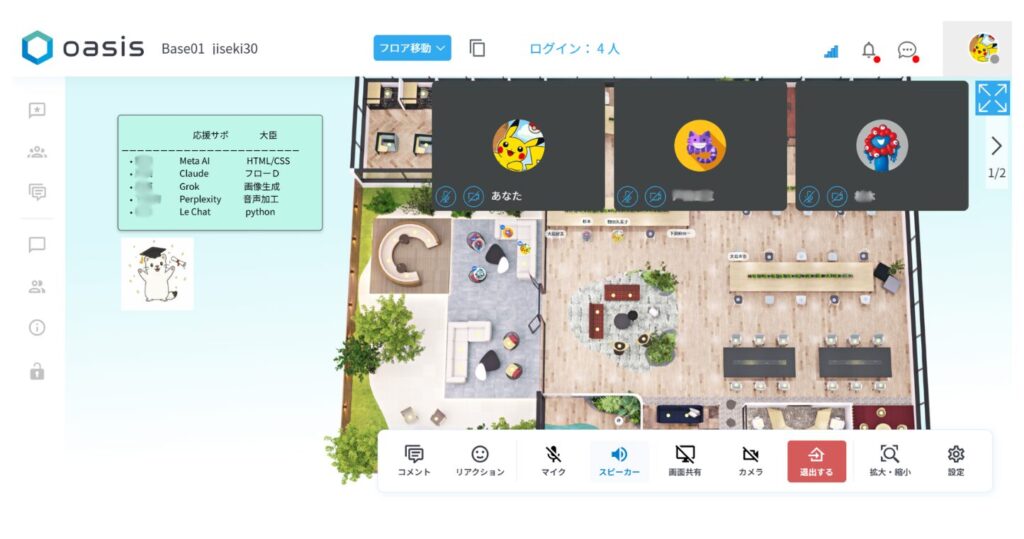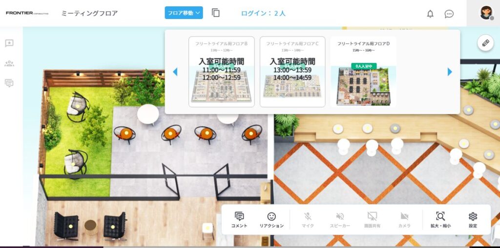 一番は「フロアを追加できる機能」と「コストパフォーマンス」ですね。メタワークオアシスでは、例えば「クライアントに入室権限を付与できるフロア」のようなものを追加できます。