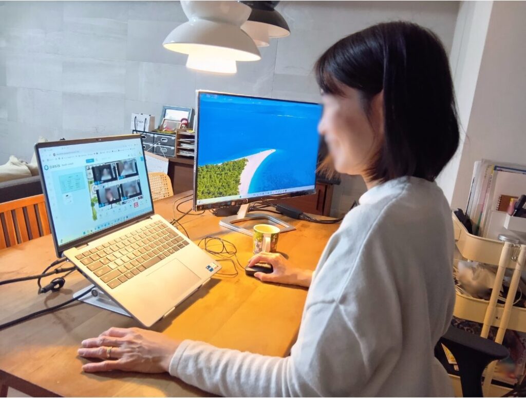 代表の大島様自身は顧客先へ訪問して支援を行うことが多い一方、バックオフィスや実務を支える5名のスタッフは全員が主婦であり、完全なフルリモート体制で勤務しています。